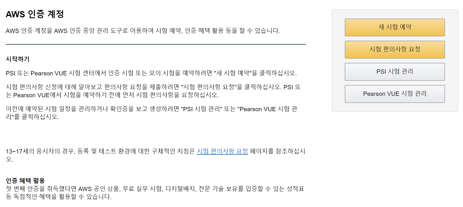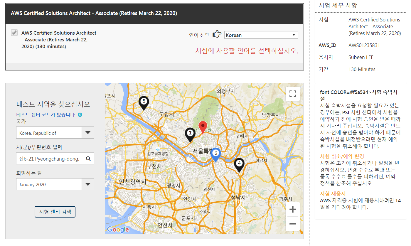 AWS 홈페이지에서 온라인으로 접수하고, 예약한 시험장에서 자격 시험을 치룬다.